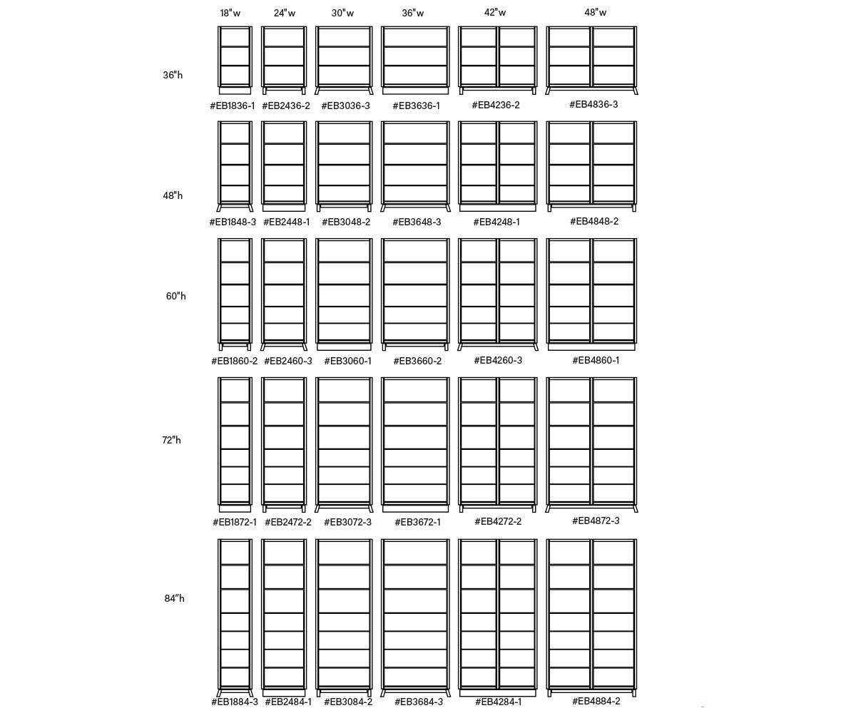 • 42″W and 48″W have a center divider