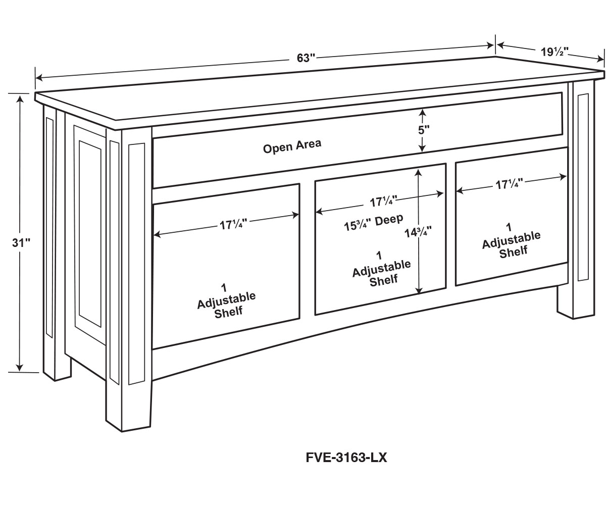 Dimensions: 63″W x 19½”D x 31″H