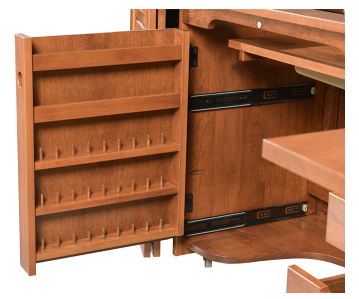 • Pullout spool shelf on left